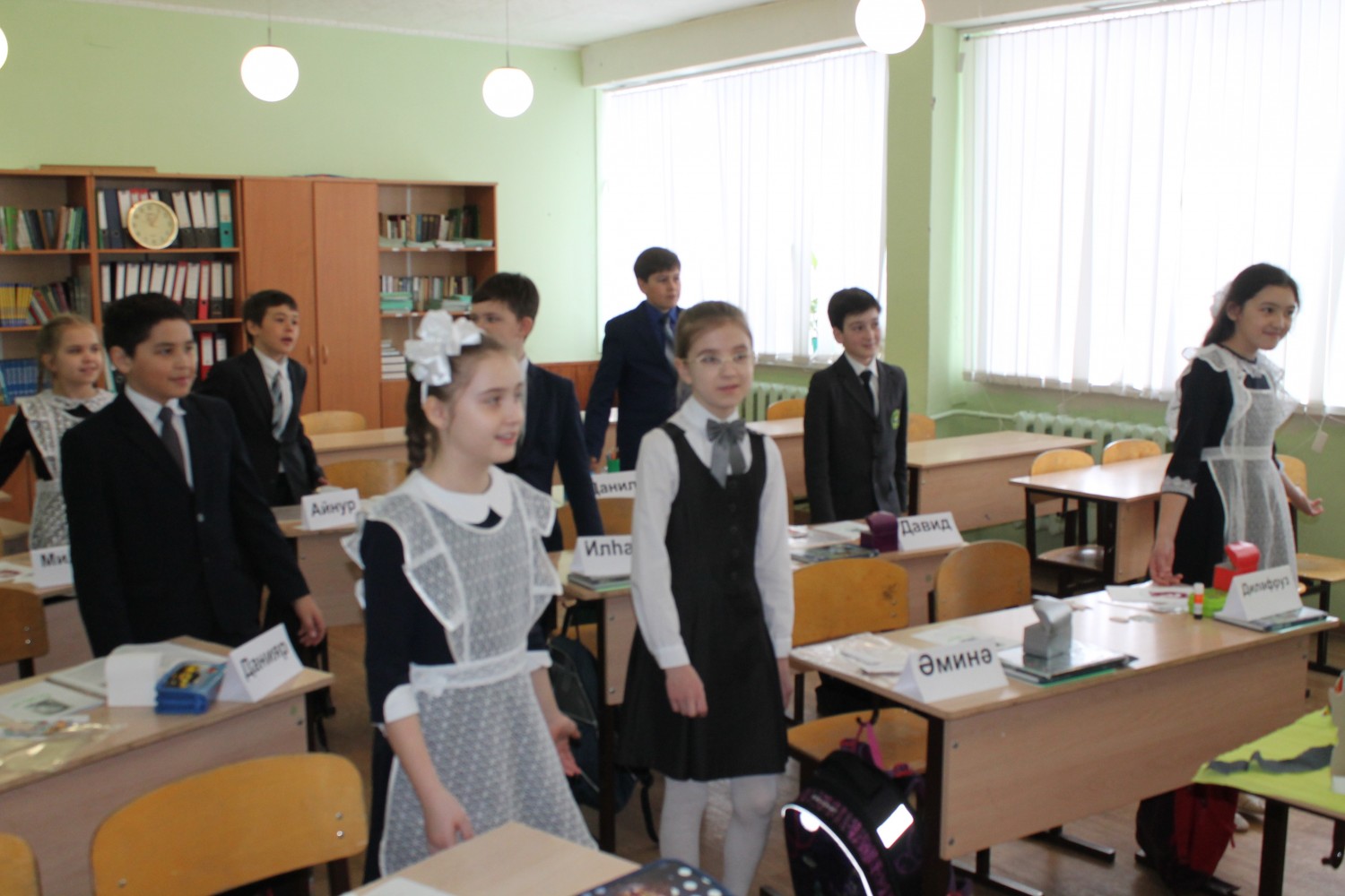 “Татар теле һәм әдәбияты укытучысы – 2017” республика конкурсында үткәрелгән ачык дәрестән күренешләр. 84 нче санлы Татар гимназиясенең 5 нче сыйныф укучылары. |