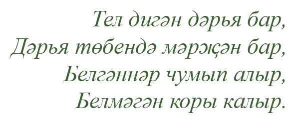 “Ел укытучысы – 2017” бәйгесеКүптән түгел районда “Ел укытучысы – 2017” бәйгесе узды. Бу конкурста «Татар теле һәм әдәбияты укытучысы», “Рус теле һәм әдәбияты укытучысы”, “Башкорт теле һәм әдәбияты укытучысы”, “Ел укытучысы – 2017” номинацияләрендә җиңүчеләр билгеләнде. Һөнә ... Читать дальше » |